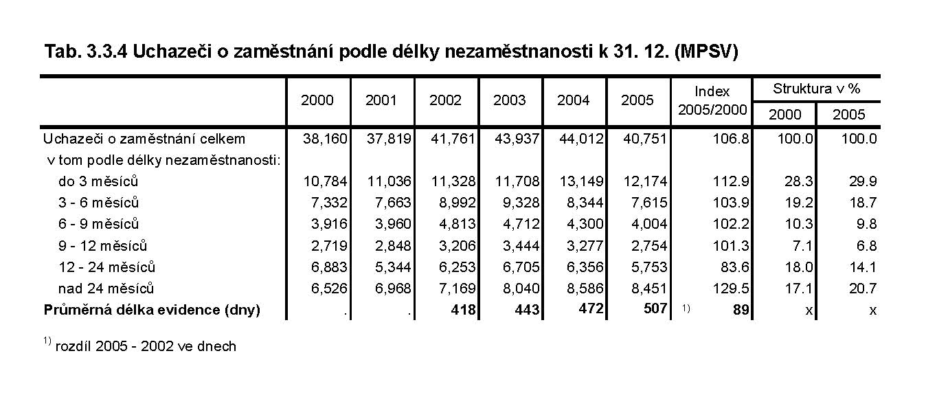 Tab. 3.3.4 Uchazeči o zaměstnání podle délky nezaměstnanosti k 31. 12. (MPSV)