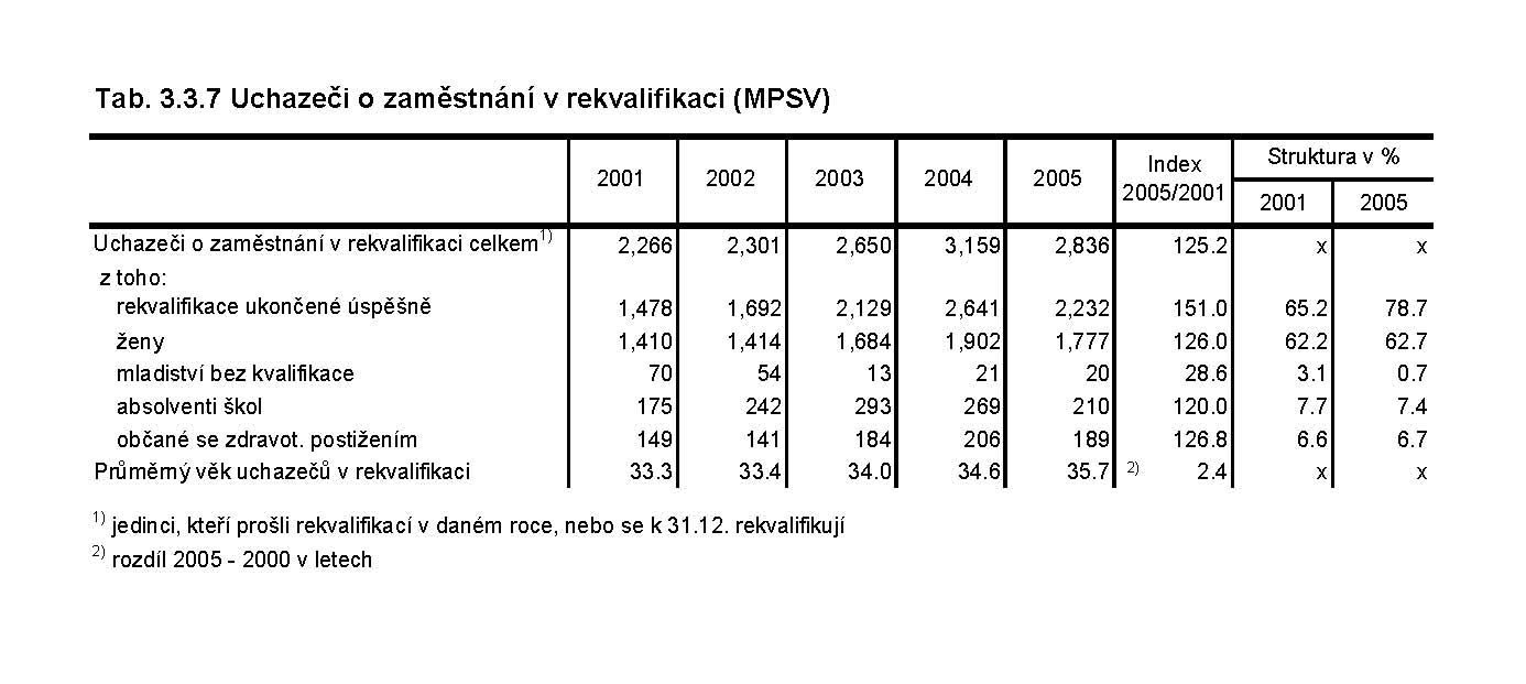 Tab. 3.3.7 Uchazeči o zaměstnání v rekvalifikaci (MPSV)