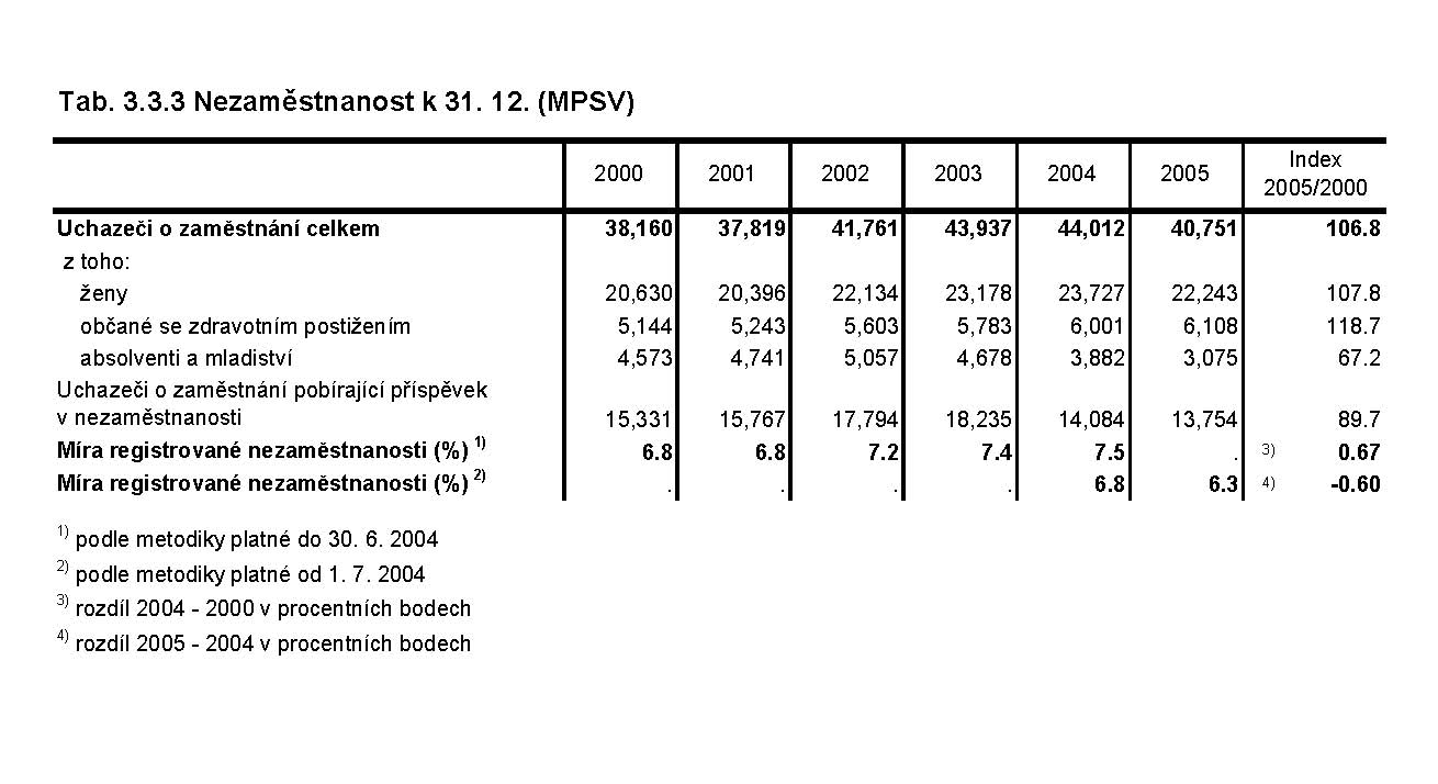 Tab. 3.3.3 Nezaměstnanost k 31. 12. (MPSV)