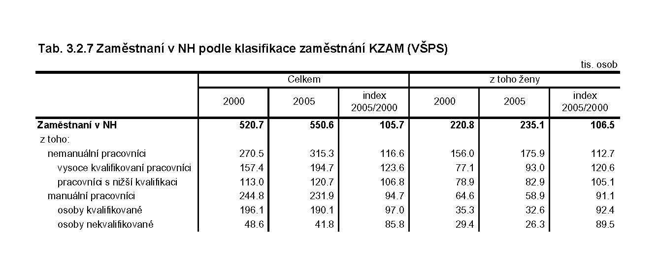 Tab. 3.2.7 Zaměstnaní v NH podle klasifikace zaměstnání KZAM (VŠPS)