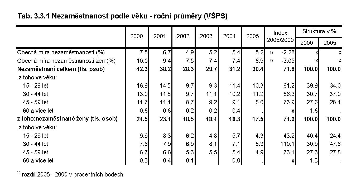 Tab. 3.3.1 Nezaměstnanost podle věku - roční průměry (VŠPS)
