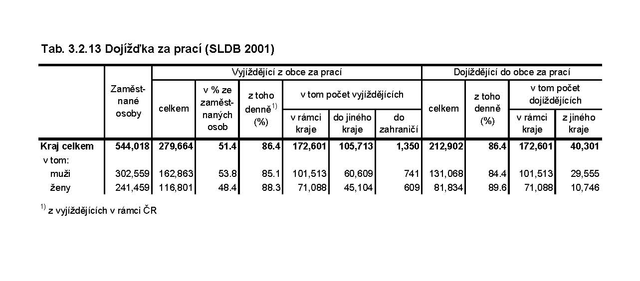 Tab. 3.2.13 Dojížďka za prací (SLDB 2001)