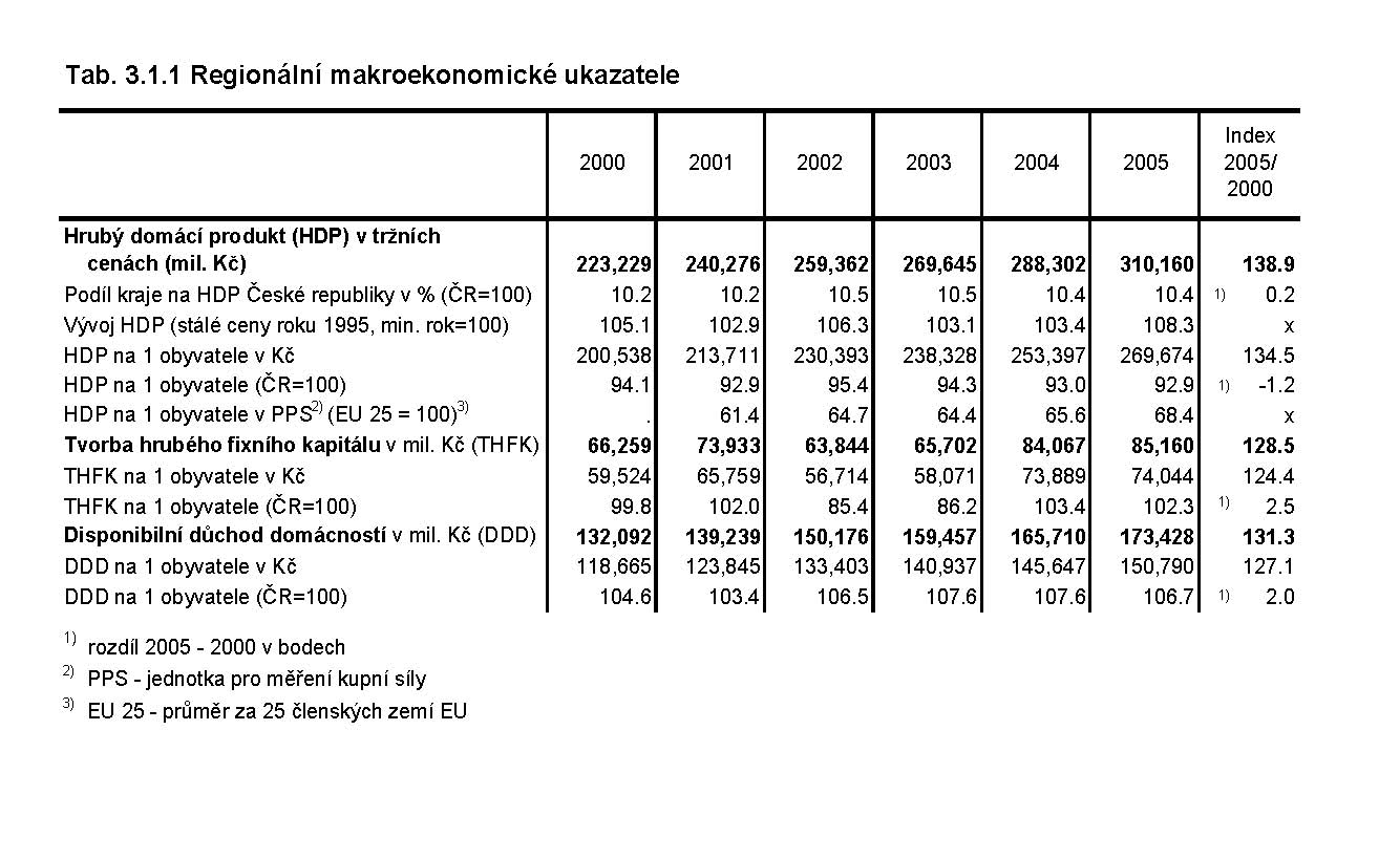 Tab. 3.1.1 Regionální makroekonomické ukazatele