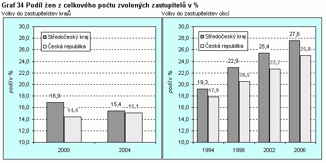 Graf 34 Podíl žen z celkového počtu zvolených zastupitelů v %