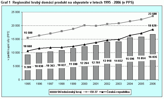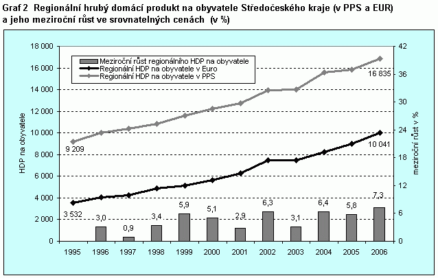 Graf 1 Regionální hrubý domácí produkt na obyvatele v letech 1995 – 2006