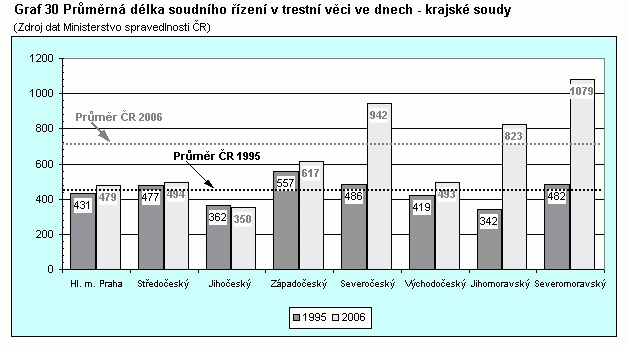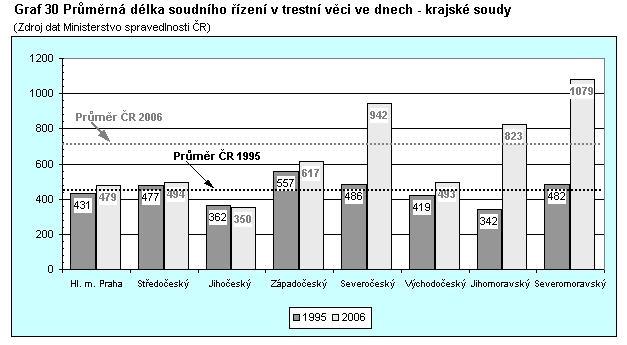Graf 30 Průměrná délka soudního řízení v trestní věci ve dnech – krajské soudy