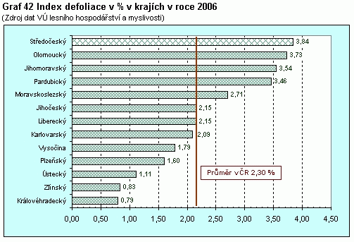 Graf 42 Index defoliace v % v krajích v roce 2006