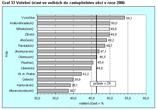 Graf 33 Volební účast ve volbách do zastupitelstev obcí v roce 2006