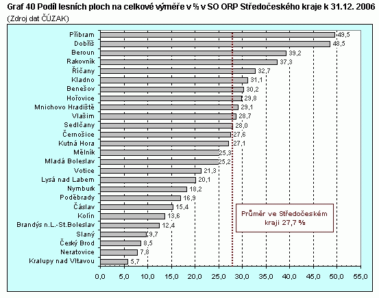 Graf 40 Podíl lesních ploch na celkové výměře v % v SO ORP Středočeského kraje k 31.12. 2006