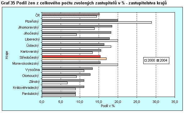 Graf 35 Podíl žen z celkového počtu zvolených zastupitelů v % - zastupitelstva krajů