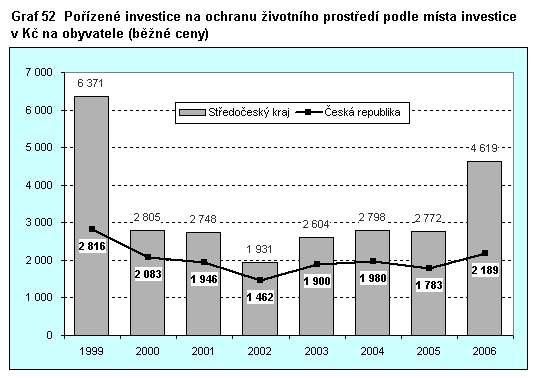 Graf 52 Pořízené investice na ochranu životního prostředí podle místa investice v Kč na obyvatele