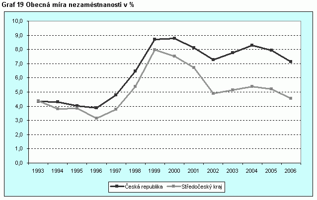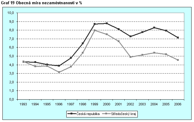 Graf 19 Obecná míra nezaměstnanosti v %