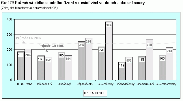 Graf 29 Průměrná délka soudního řízení v trestní věci ve dnech – okresní soudy