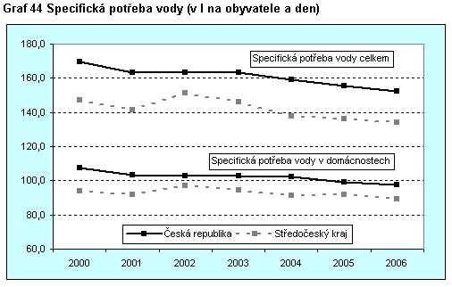 Graf 44 Specifická potřeba vody (v l na obyvatele a den)
