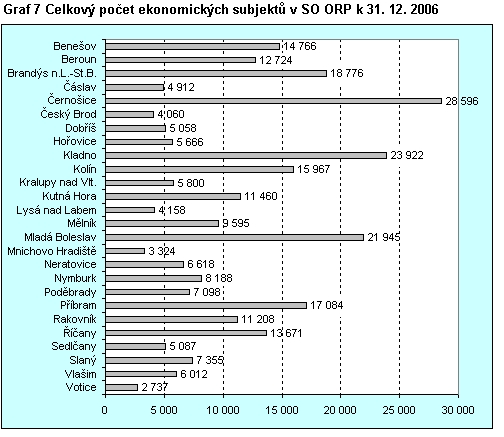 Graf 7 Celkový počet ekonomických subjektů v SO ORP k 31. 12. 2006