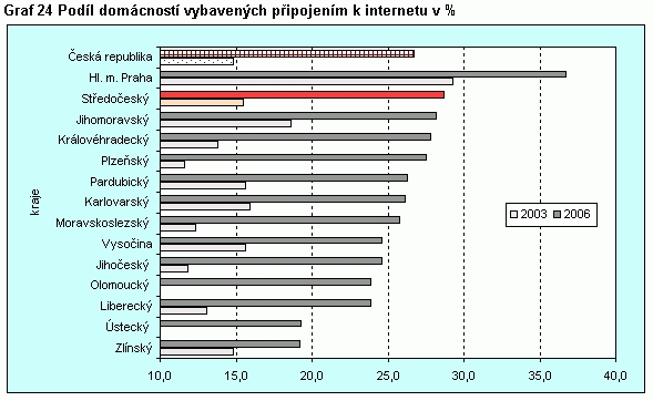 Graf 24 Podíl domácností vybavených připojení k internetu v %