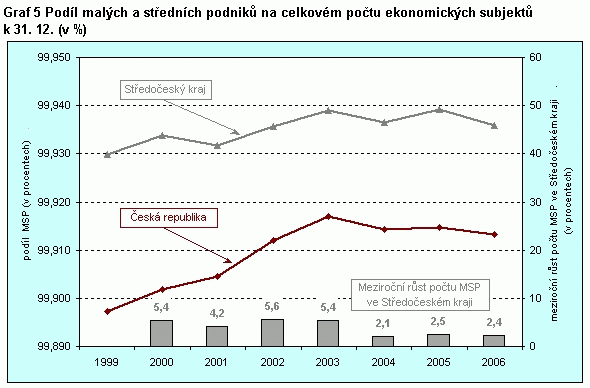 Graf 5 Podíl malých a středních podniků na celkovém počtu ekonomických subjektů k 31. 12. 2006 v %