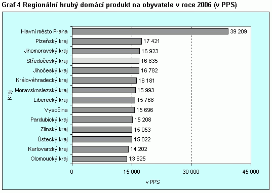 Graf 4 Regionální hrubý domácí produkt na obyvatele v roce 2006 (v PPS)
