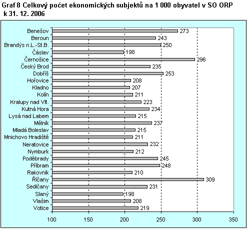 Graf 8 Celkový počet ekonomických subjektů na 1 000 obyvatel v SO ORP k 31. 12. 2006