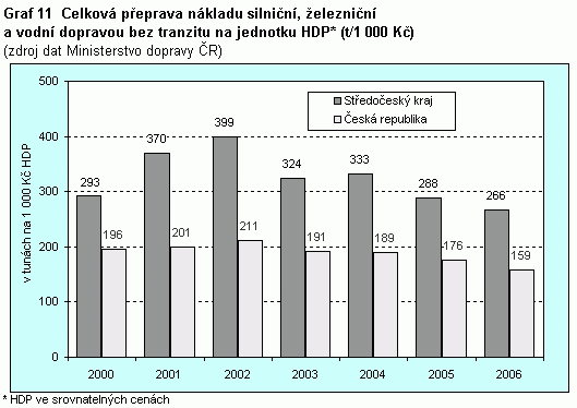 Graf 11 Celková přeprava nákladů silniční, železniční a vnitrozemskou vodní dopravou