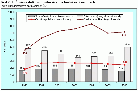 Graf 28 Průměrná délka soudního řízení v trestní věci ve dnech