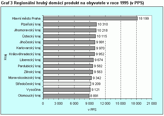 Graf 3 Regionální hrubý domácí produkt na obyvatele v roce 1995 (v PPS)