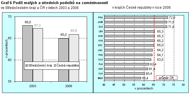Graf 6 Podíl malých a středních podniků na zaměstnanosti