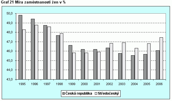 Graf 21 Míra zaměstnanosti žen v %
