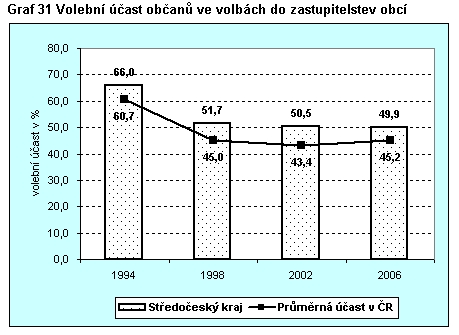 Graf 31 Volební účast občanů ve volbách do zastupitelstev obcí