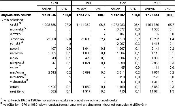 Tab. 3.5.1 Vývoj obyvatelstva podle národnosti