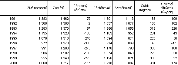 Tab. 5 Bilance pohybu obyvatelstva v letech 1991 - 2000