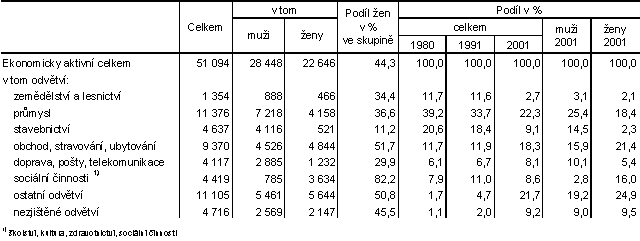 Ekonomicky aktivní ženy mají největší absolutní zastoupení v odvětví průmyslu a podílí se více jak 36 % na celkovém počtu ekonomicky aktivních osob v tomto odvětví.