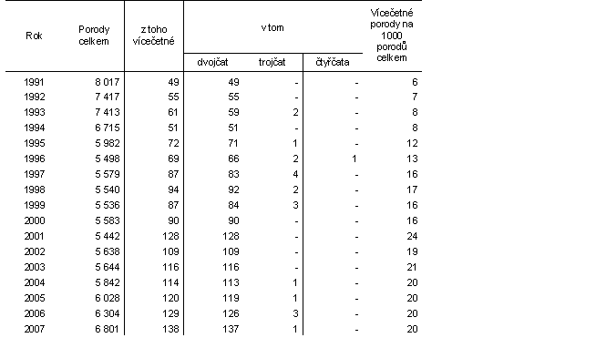 Vícečetné porody v Jihočeském kraji v letech 1991 – 2007