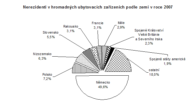 Hosté v hromadných ubytovacích zařízení strávili v roce 2007 v Plzeňském kraji 1 572 649 nocí, což znamená ve srovnání s předcházejícím rokem nárůst o 7,8%. Na celkovém počtu přenocování v kraji se podíleli nerezidenti téměř 29%. Tuzemští návštěvníci pobývali v hromadných ubytovacích zařízeních na území Plzeňského kraje v průměru 4,2 dny, zahraniční turisté o něco méně (3,7 dne). Průměrný počet přenocování i průměrná doba pobytu se zkrátily proti předchozímu roku 2006, a to jak u domácích návštěvníků (o 0,1 dne), tak i u zahraničních turistů (o 0,2 dne). Ve vztahu ke kategorii HUZ dávali zahraniční turisté přednost ubytování v hotelích a penzionech.