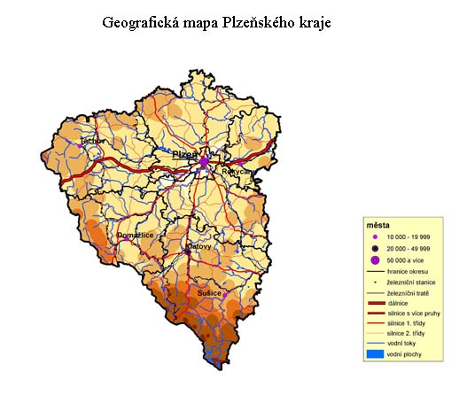 1. Geografická mapa Plzeňského kraje