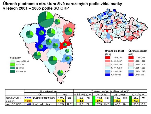 25. Úhrnná plodnost a struktura živě naroz. podle věku matky v letech 2001 - 2005 podle SO ORP