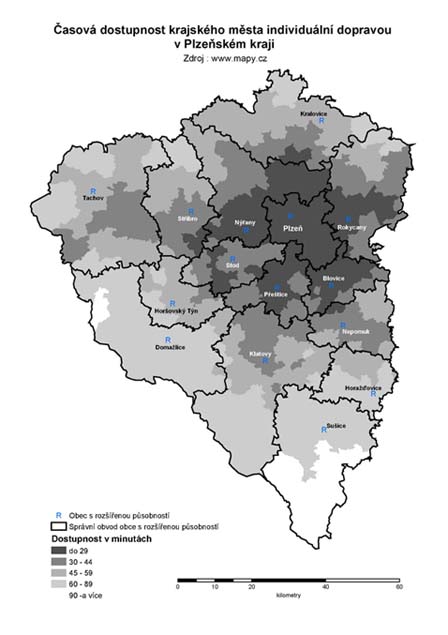 5. Časová dostupnost krajského města individuální dopravou v Plzeňském kraji