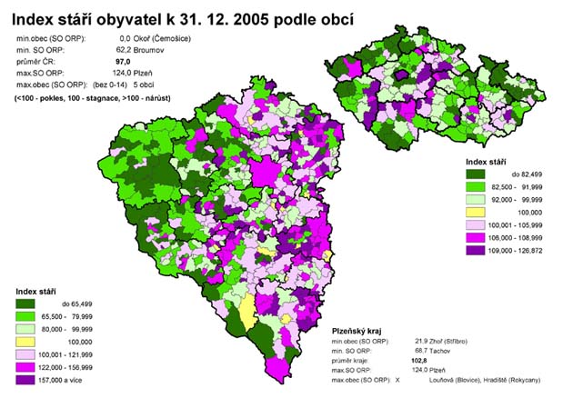 12. Index stáří obyvatel k 31. 12. 2005 podle obcí