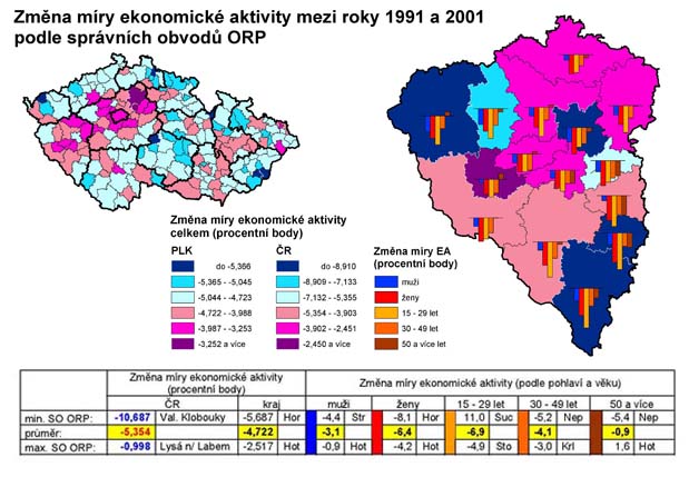 29. Změna míry ekonomické aktivity mezi roky 1991 a 2001 podle SO ORP