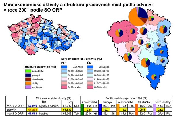 31. Míra ekonomické aktivity a struktura pracovních míst podle odvětví v roce 2001 podle SO ORP