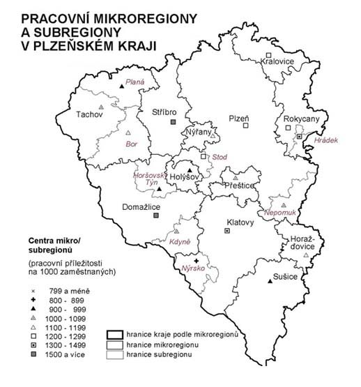 4. Pracovní mikroregiony a subregiony v Plzeňském kraji