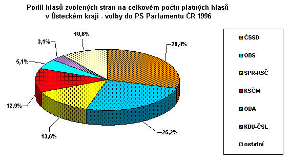 Podíl hlasů zvolených stran na celkovém počtu platných hlasů