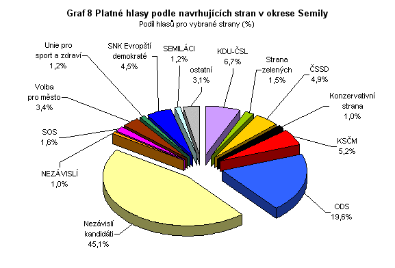 Graf 8 Platné hlasy podle navrhujících stran v okrese Semily