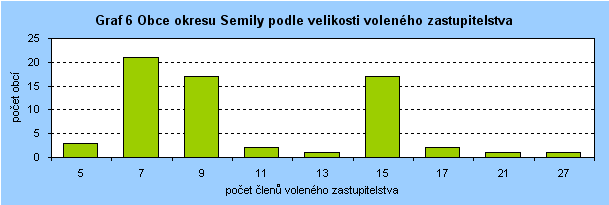 Graf 6 Obce okresu Semily podle velikosti voleného zastupitelstva