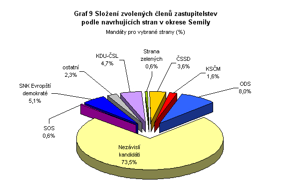 Graf 9 Složení zvolených členů zastupitelstev podle navrhujících stran v okrese Semily