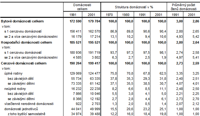 5. Domácnosti Jedním ze základních výstupů sčítání
