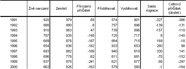 Tab. 3 Bilance pohybu obyvatelstva v letech 1991 - 2000