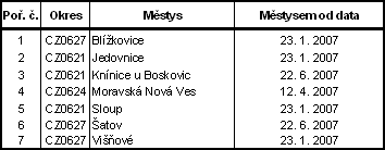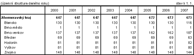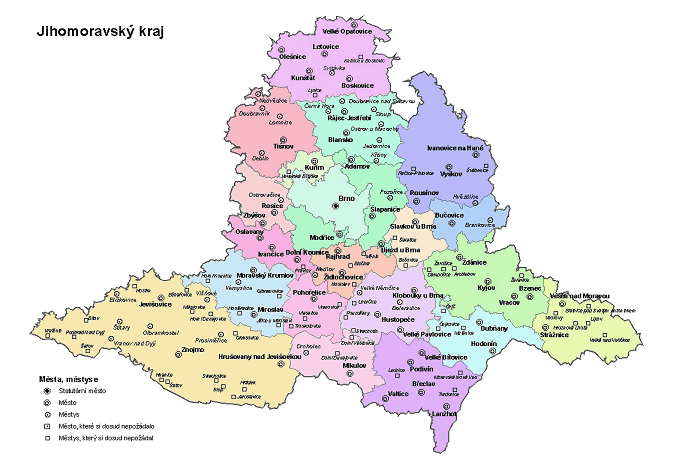 Od roku 2000 byly také tři obce stanoveny městem, a to v roce 2001 Lanžhot a Velké Bílovice a v roce 2005 Újezd u Brna. Přehled měst v Jihomoravském kraji k 1. 1. 2007