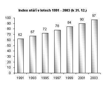 Věkovou strukturu obyvatel lze též hodnotit ukazatelem „index stáří“, který udává poměr dětské složky (děti do věku 14 let) v populaci k obyvatelstvu v poproduktivním věku (osoby starší 65 let).