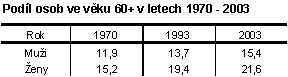 Ovšem zcela opačná situace, než u dětí do 14 let, je u populace nad 60 let, kde se postupně podíly z celkového počtu obyvatel zvyšovaly z výchozích 13,6 % v roce 1970 na 18,5 % v roce 2003. A jak si to vysvětlit? Důvod je stále stejný, rodí se méně dětí a lidé se dožívají vyššího věku. Na počátku hodnoceného období mělo trvalý pobyt v ORP celkem 9 159 osob ve věku 60 a více let, ale na konci roku 2003 to bylo již 13 529 osob.
